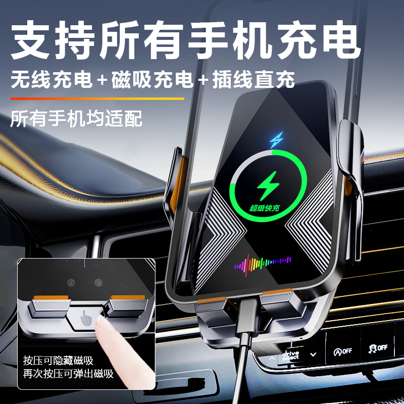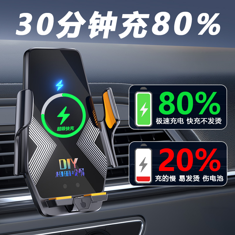 车载手机支架汽车无线充电器超级快充2025新款 车用导航出风口固定