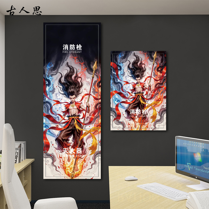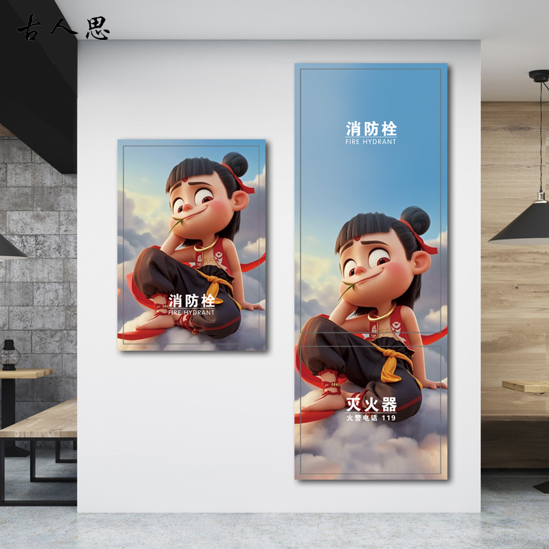 消防栓装 饰遮挡创意卡通贴纸消防门箱标识贴画哪吒配电箱贴