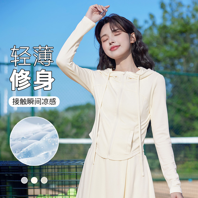 班尼路卡其色修身 2025春夏运动辣妹显瘦凉感瑜伽服Q 休闲连帽开衫