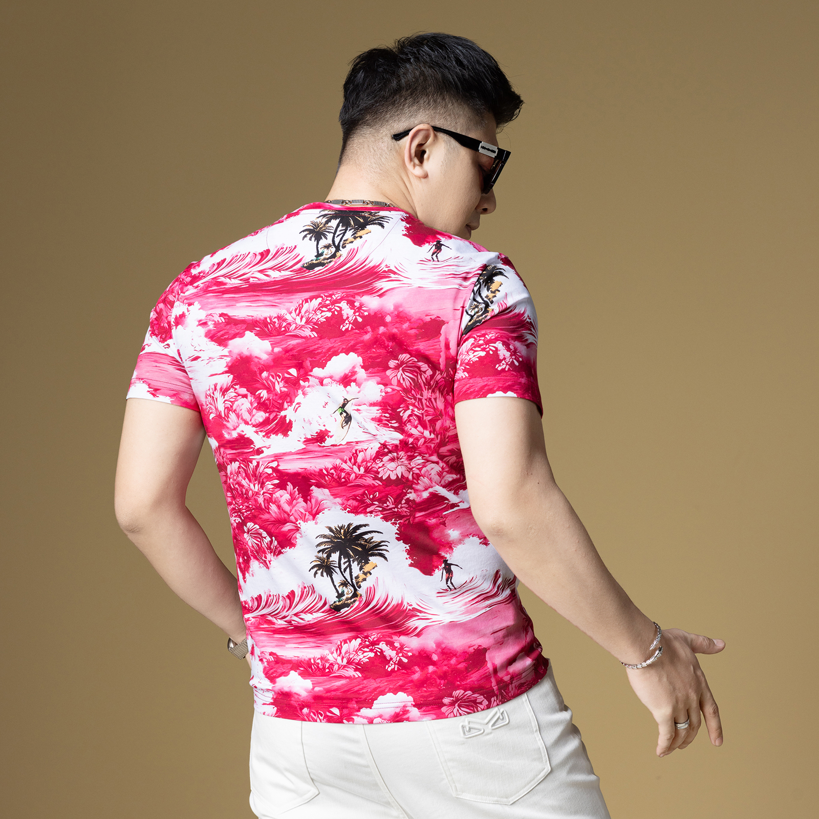 t恤男2025新款 ZOUK欧洲站男装 欧货潮牌夏威夷冲浪印花丝光棉短袖