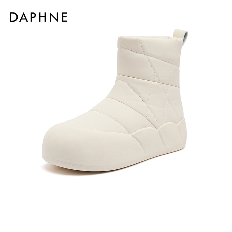加绒面包短靴厚底防水防滑棉鞋 冬季 2025新款 达芙妮白色雪地靴女款