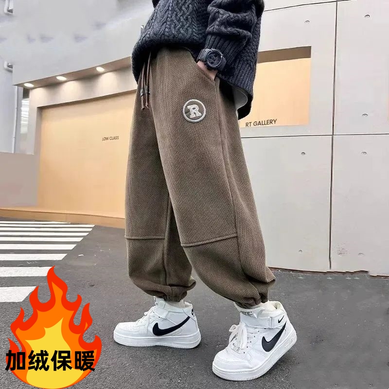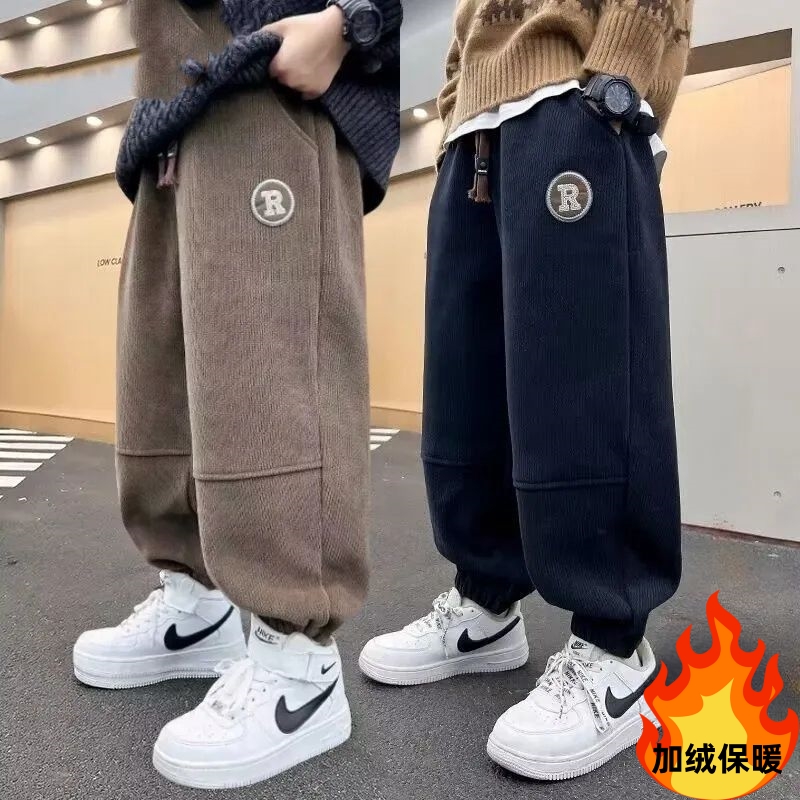 一体绒保暖长裤 男童裤 灯芯绒加绒卫裤 2024新款 潮束脚 子春秋冬款