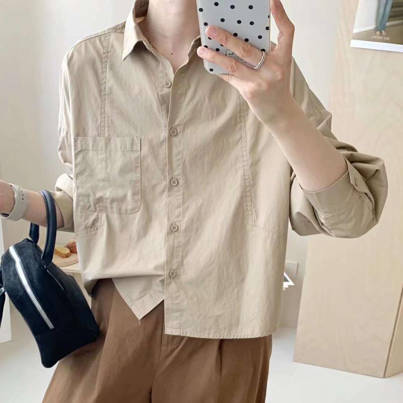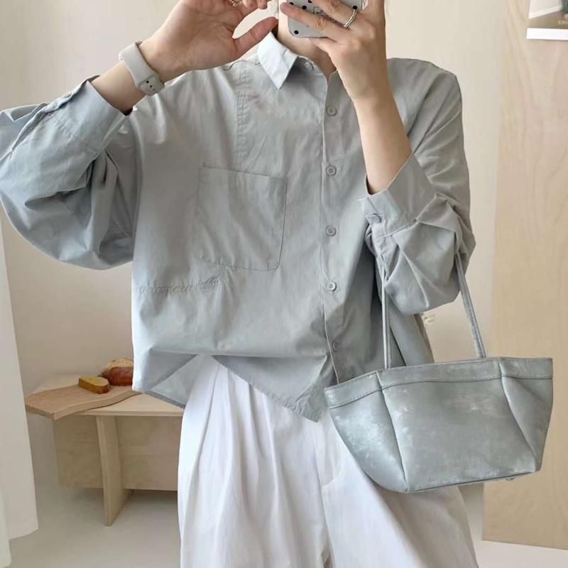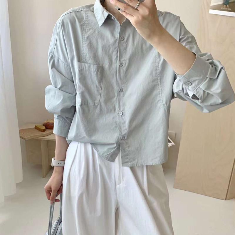 拼接纯色长袖 防晒叠穿打底衫 白衬衫 小个子衬衣休闲衫 女短款 春秋款