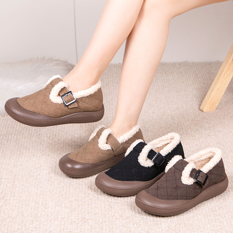 中老年防滑保暖加绒加厚女鞋 女妈妈冬季 老北京布鞋 包跟外穿棉拖鞋