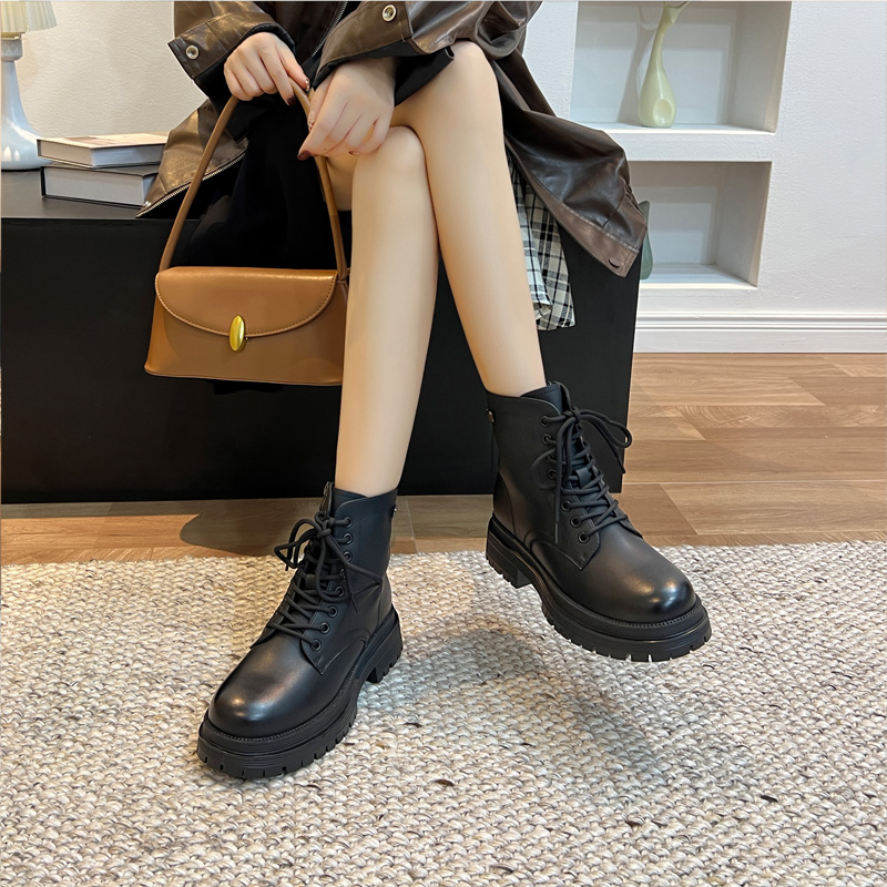 达芙妮黑色马丁靴女款 皮靴厚底炸街英伦风增高靴子女短靴 2025秋季