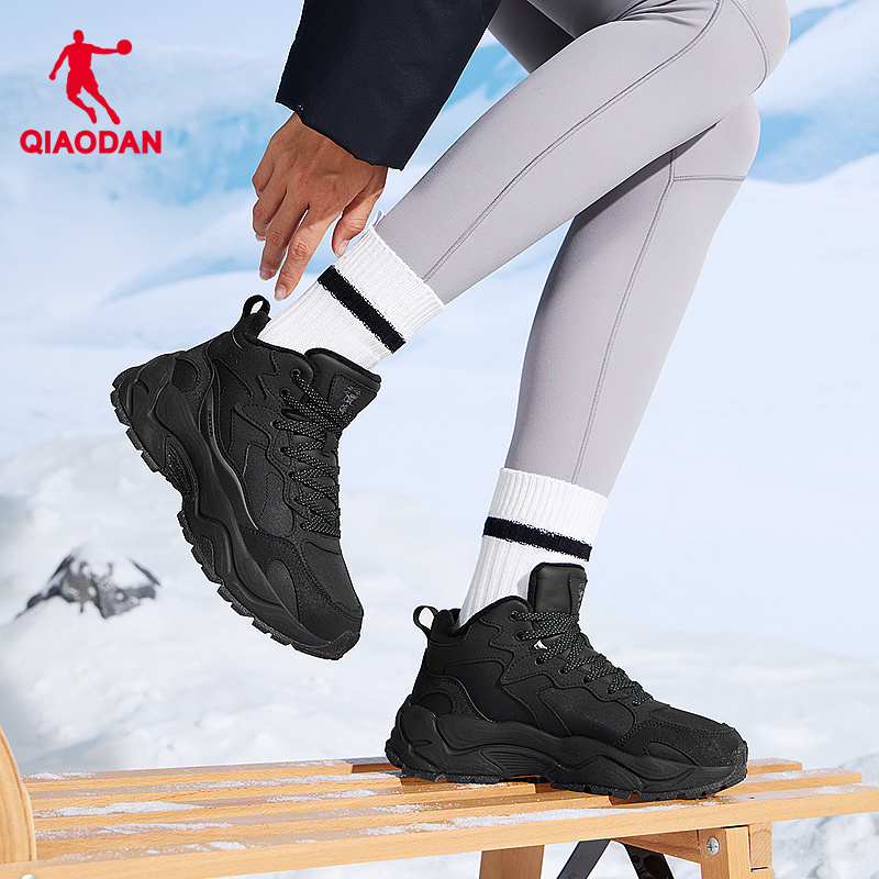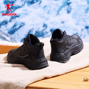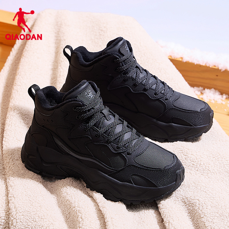 黑色户外运动鞋 乔丹棉鞋 皮面防水高帮加绒保暖休闲鞋 2025冬季 女鞋