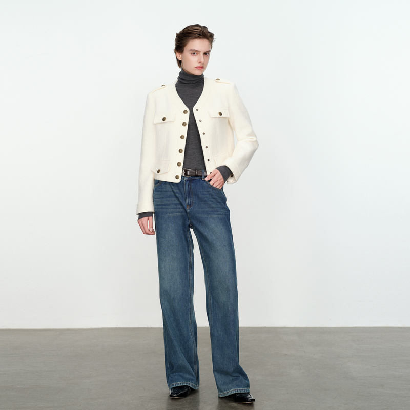 婉甸暖瓷白短款 呢料外套合体型开襟MBD1O02DZX