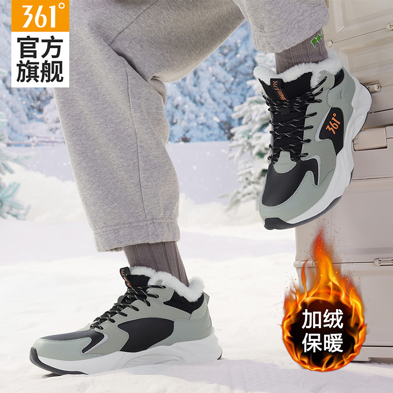 冬季 2025新款 皮面加绒男棉鞋 防水跑步鞋 361男鞋 保暖休闲鞋 运动鞋
