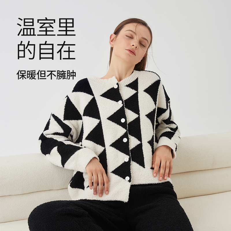 淳度半边绒睡衣女秋冬款 高级感格子可外穿珊瑚绒家居服冬 加厚长袖