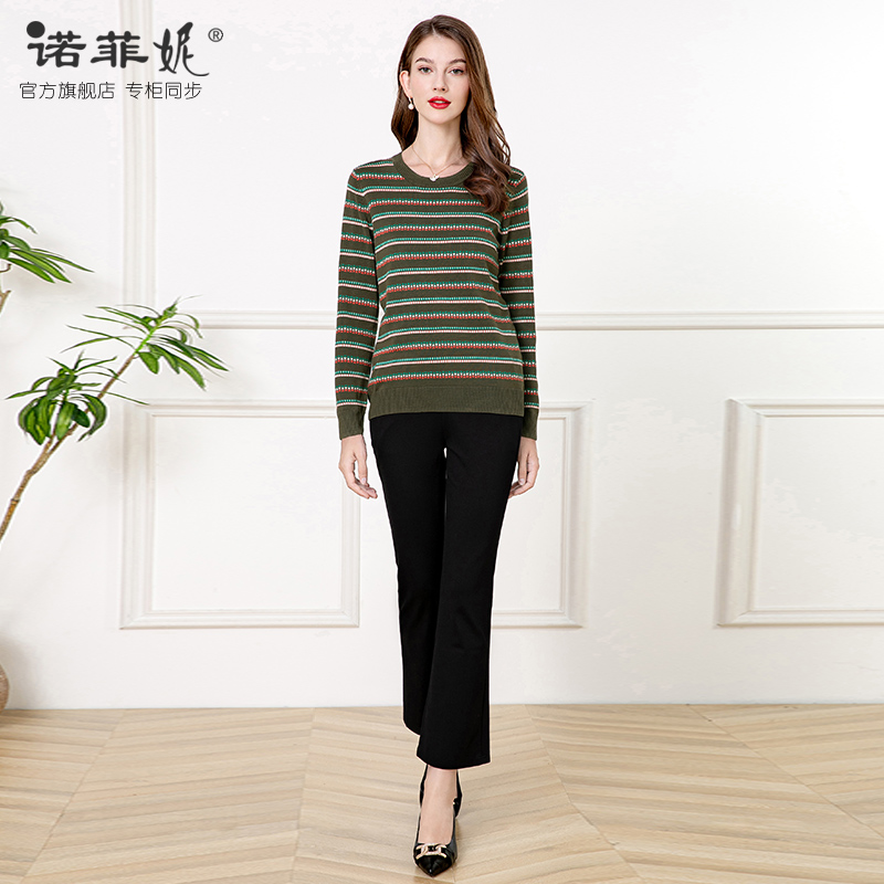 针织衫 中年女装 彩色减龄条纹圆领长袖 新款 直筒显瘦上衣女 2025秋装