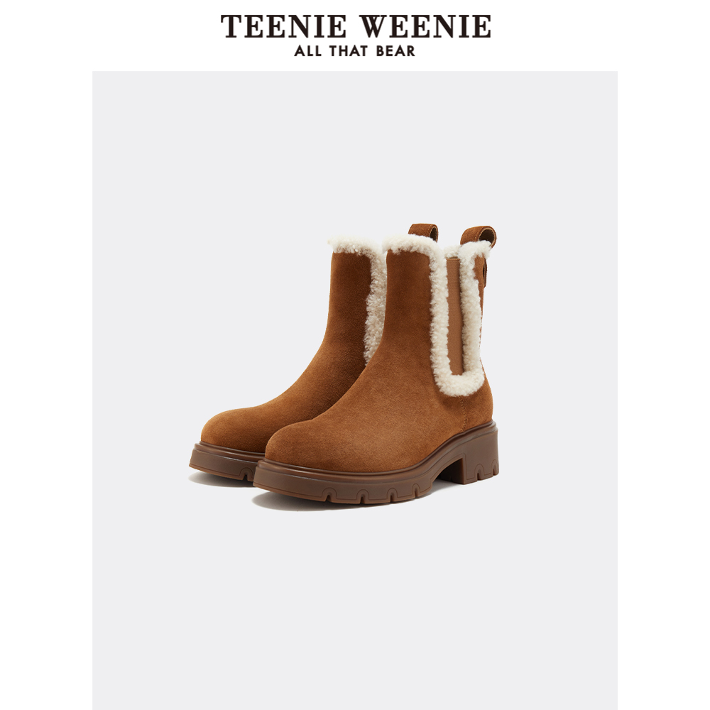TeenieWeenie小熊简约短靴子秋冬季 反毛拼接美拉德风舒适女鞋