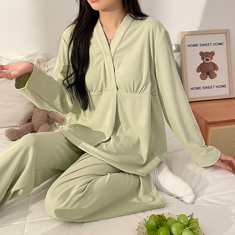 蓄热保暖孕妇产后带胸垫哺乳喂奶套装 德绒月子服睡衣女秋冬季 长袖