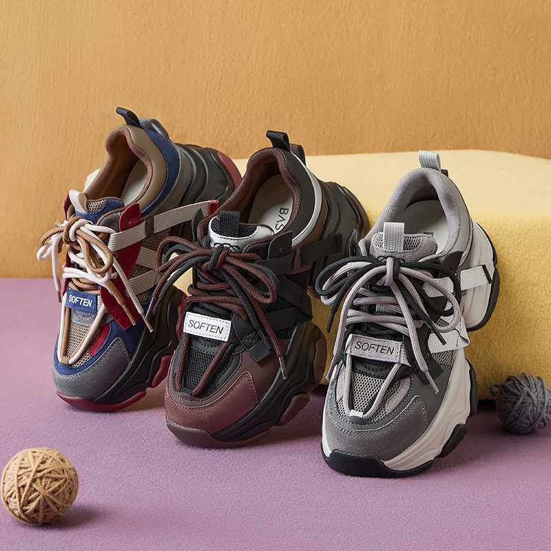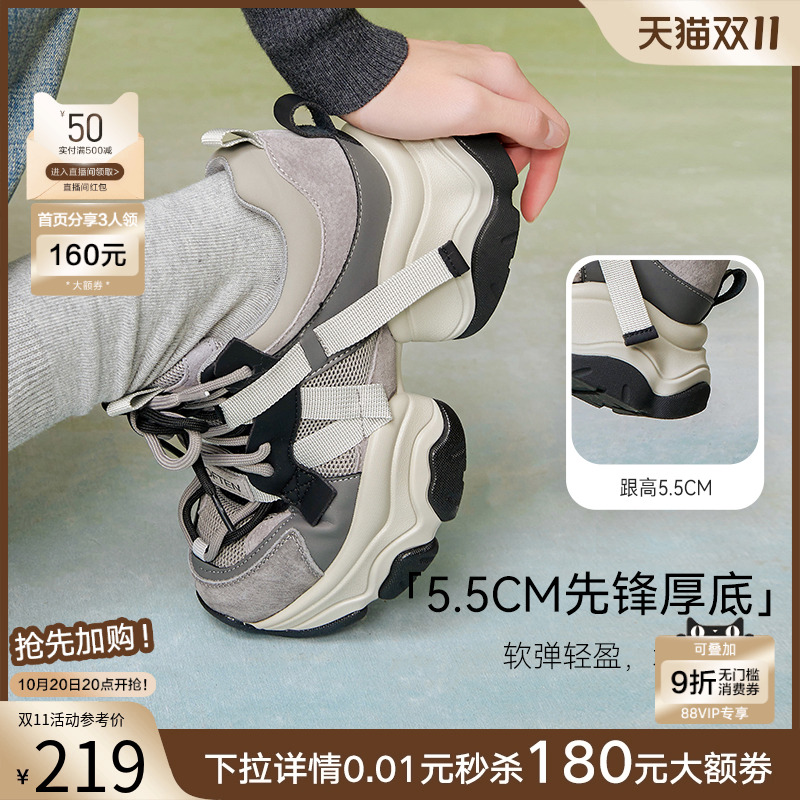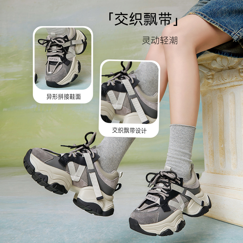 A8201AM5 厚底增高女休闲鞋 百思图2025春夏商场新款 真皮运动老爹鞋