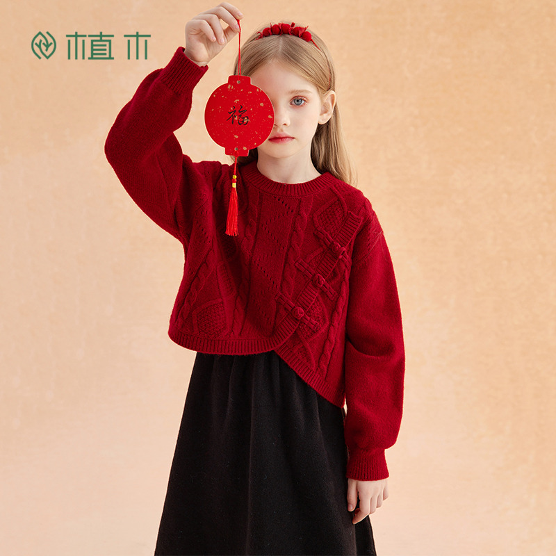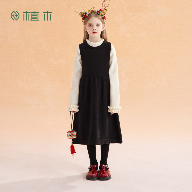 中大童红色年服套装 秋冬2025新款 儿童裙子 女童裙子套装 植木童装