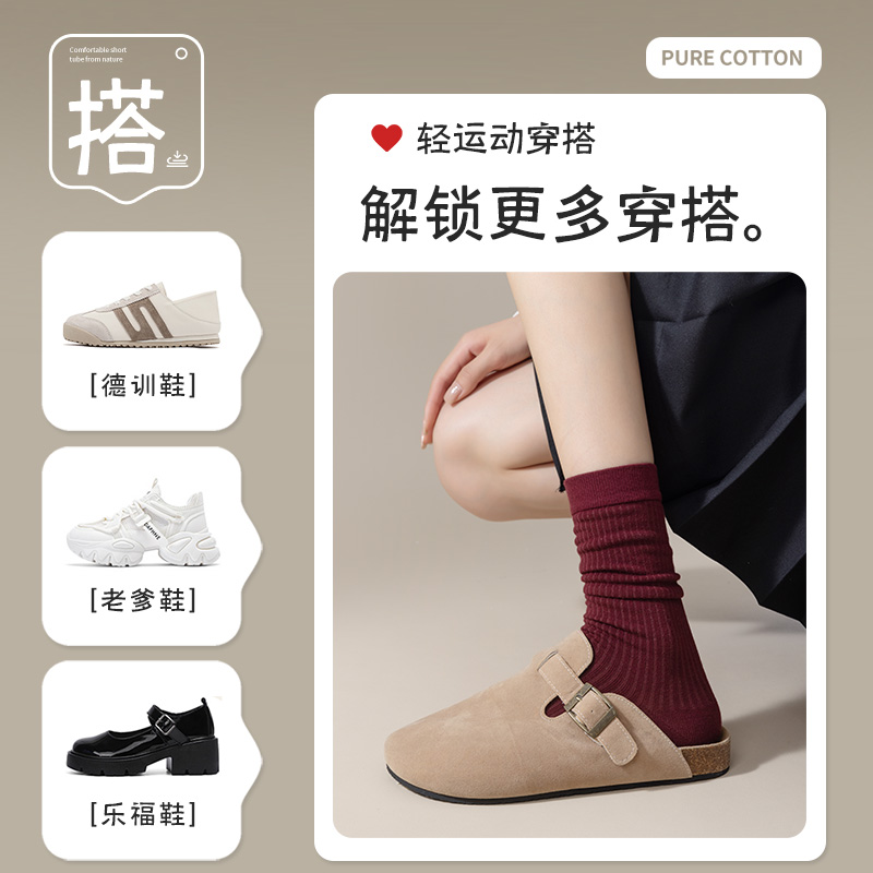堆堆袜长袜 爆款 安可拉红无骨袜子女春秋款 纯棉纱线中筒袜2024新款