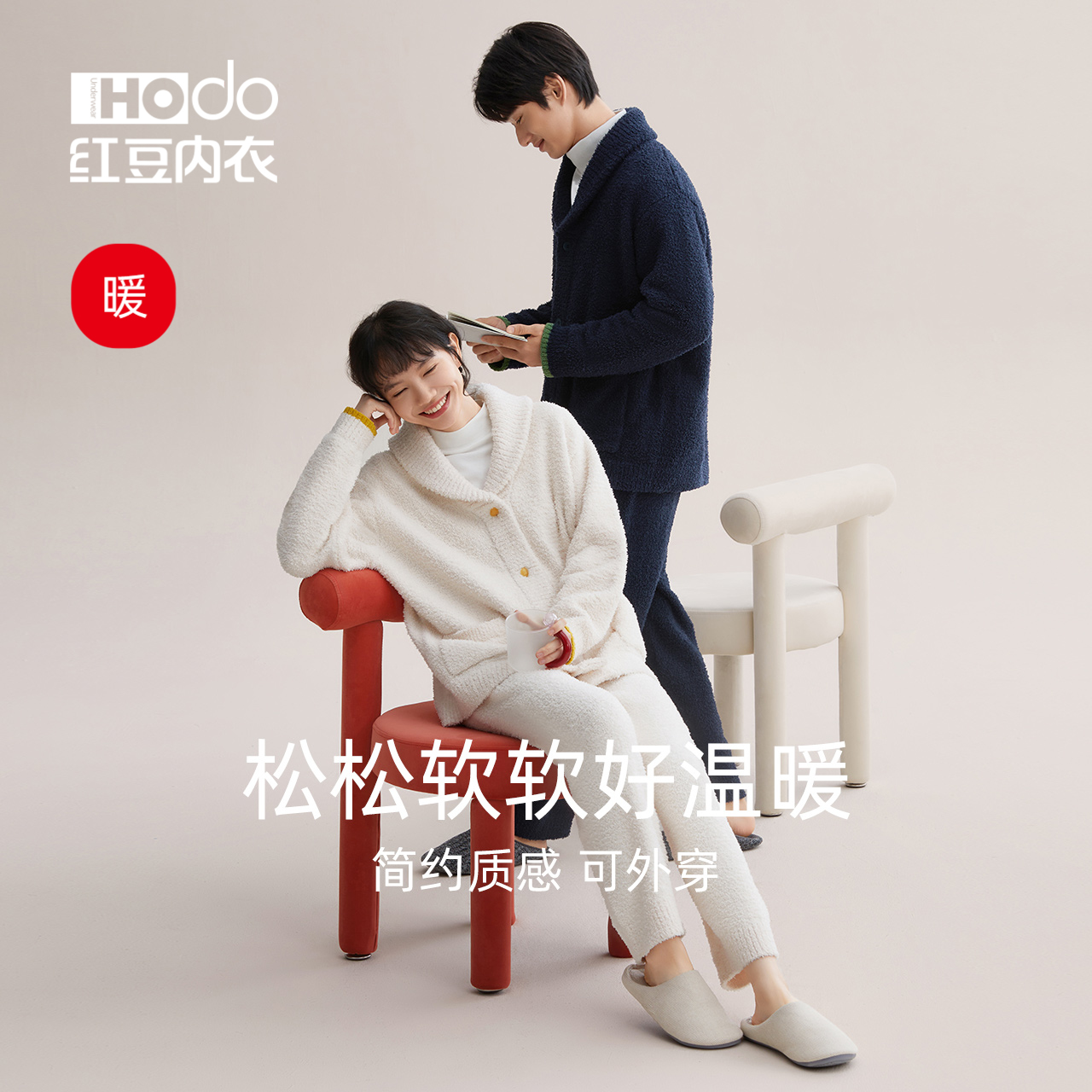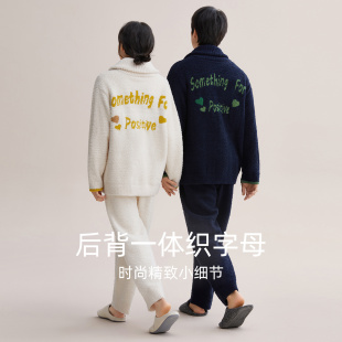 加厚珊瑚绒女休闲家居服套装 男士 红豆红豆情侣睡衣半边绒款 Hodo