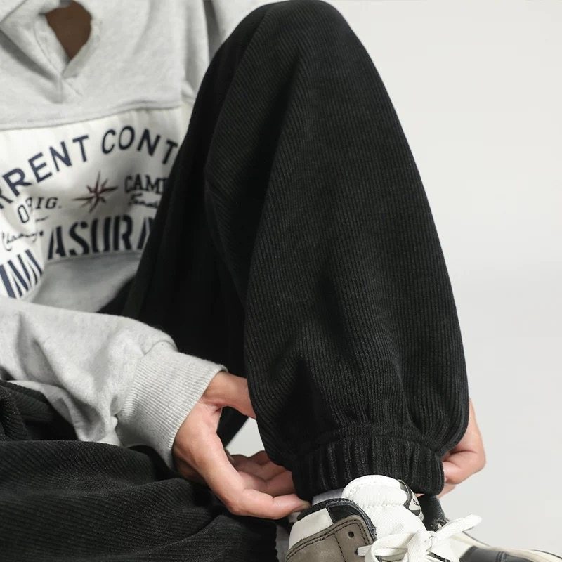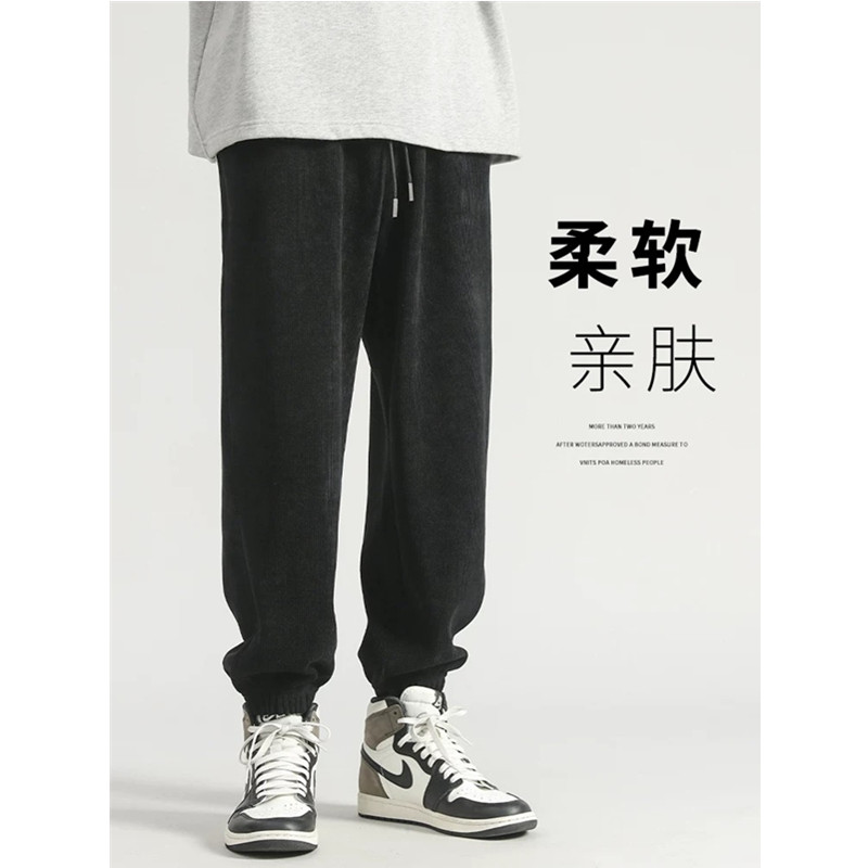 系带松紧宽松百搭休闲裤 鸭鸭羊毛蚕丝保暖卫裤 男士 新款 2025秋季
