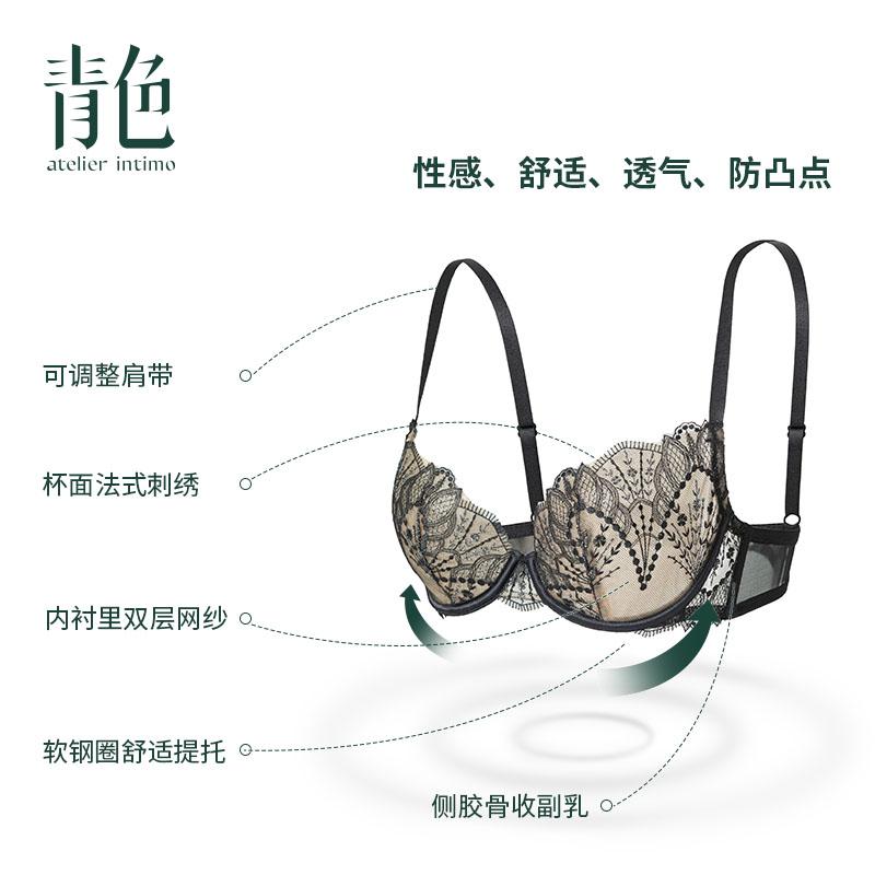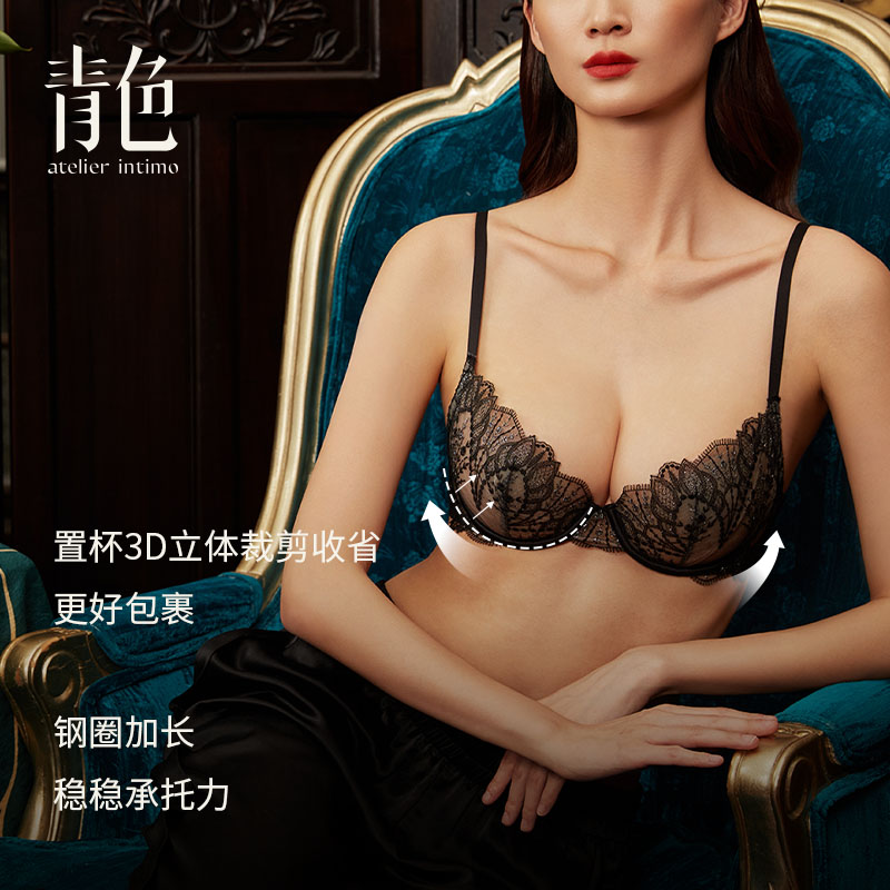 芬腾女士内衣大胸显小上托防下垂文胸蕾丝性感聚拢薄款 无钢圈胸罩