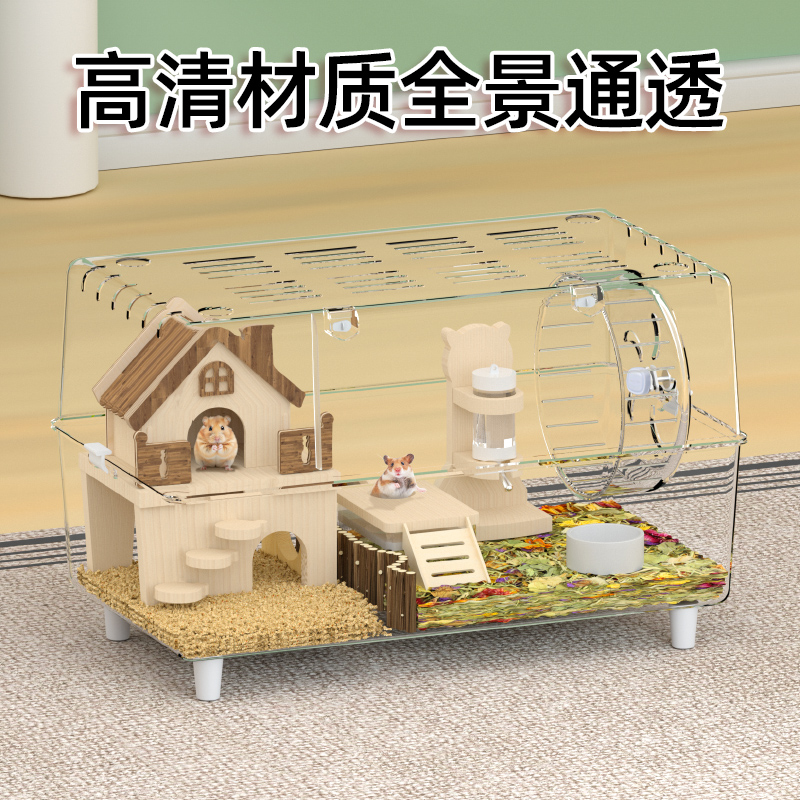 洁西仓鼠金丝熊水晶笼高透造景透明亚克力专用超大便宜50豪华别墅