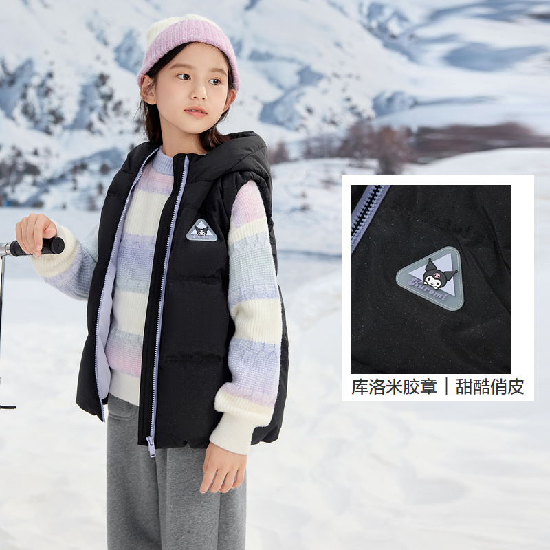库洛米IP巴拉巴拉女童羽绒马甲宝宝加厚背心儿童连帽外套冬装 童装