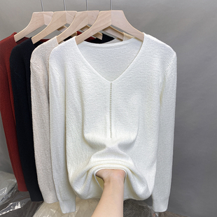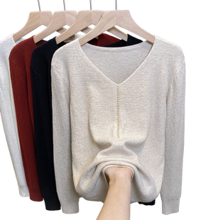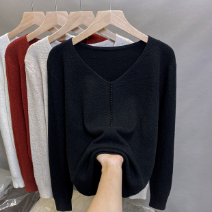 打底针织衫 紧身长袖 上衣 v领内搭黑色毛衣女早秋韩系修身 秋冬新款