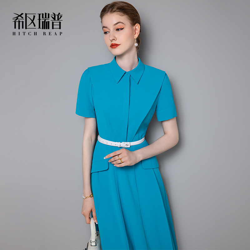 收腰大摆气质仙女裙子蓝色 新款 希区瑞普高端气质法式 连衣裙女夏季