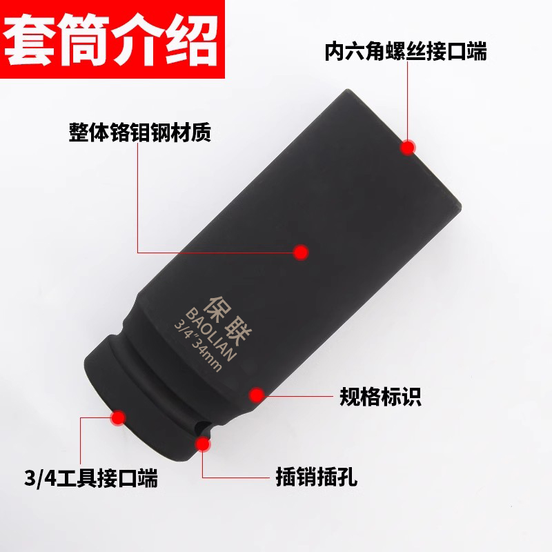 4重型六角加长120MM套筒电动扳手棘轮扳手汽修机修专用套筒工具
