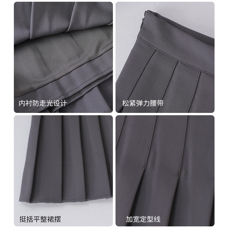 灰色百褶裙女春秋西装 料高腰短裙显瘦黑色a字百搭半身裙小裙子