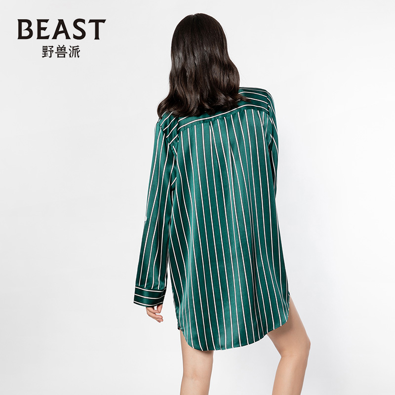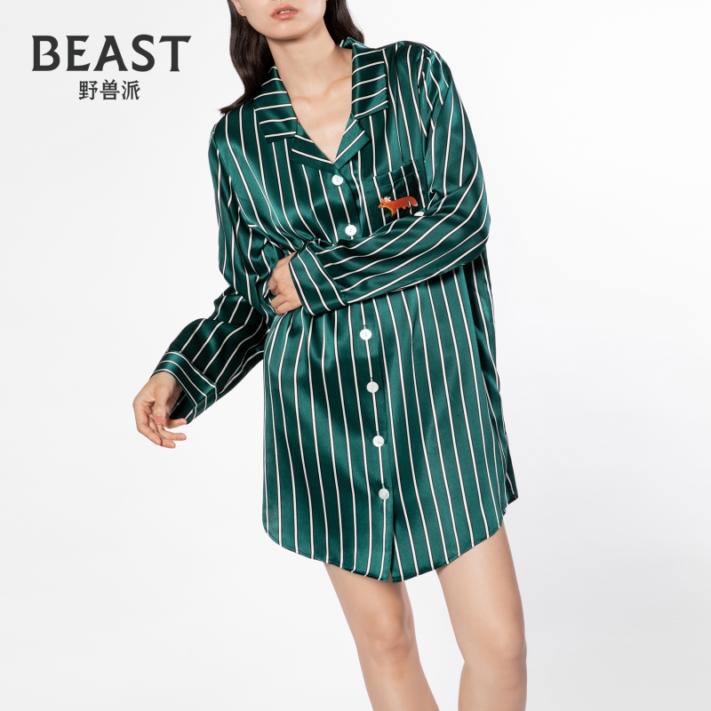BEAST野兽派小狐狸与花22姆米真丝衬衫 裙女外穿睡衣生日节日礼物