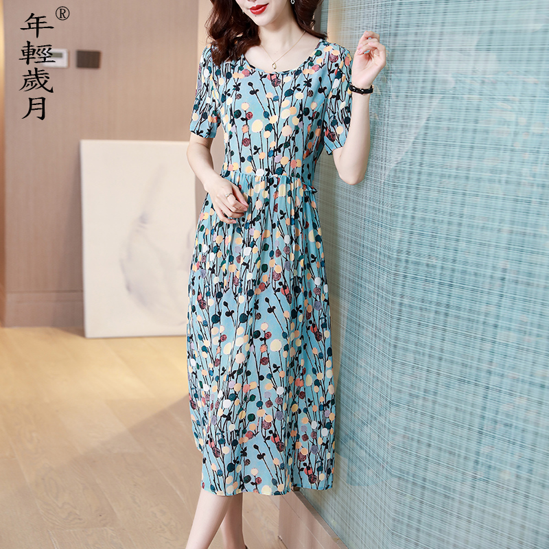 裙子 桑蚕丝中长款 杭州真丝连衣裙女2025新款 印花收腰高端重磅夏季