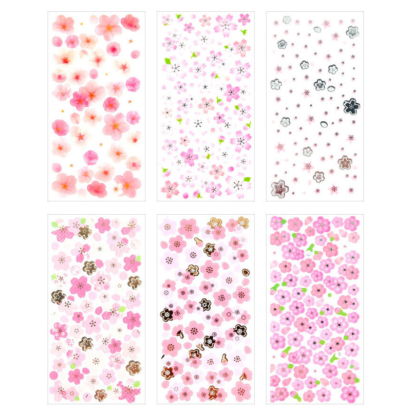 樱花花卉花朵贴纸无痕防水自粘玻璃保温杯水杯奶瓶子手机后壳背手账装 饰小图案女孩儿童透明防热可爱水壶贴画