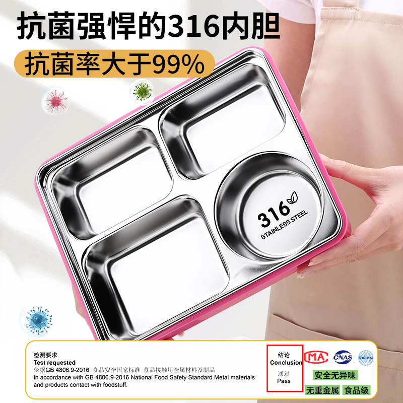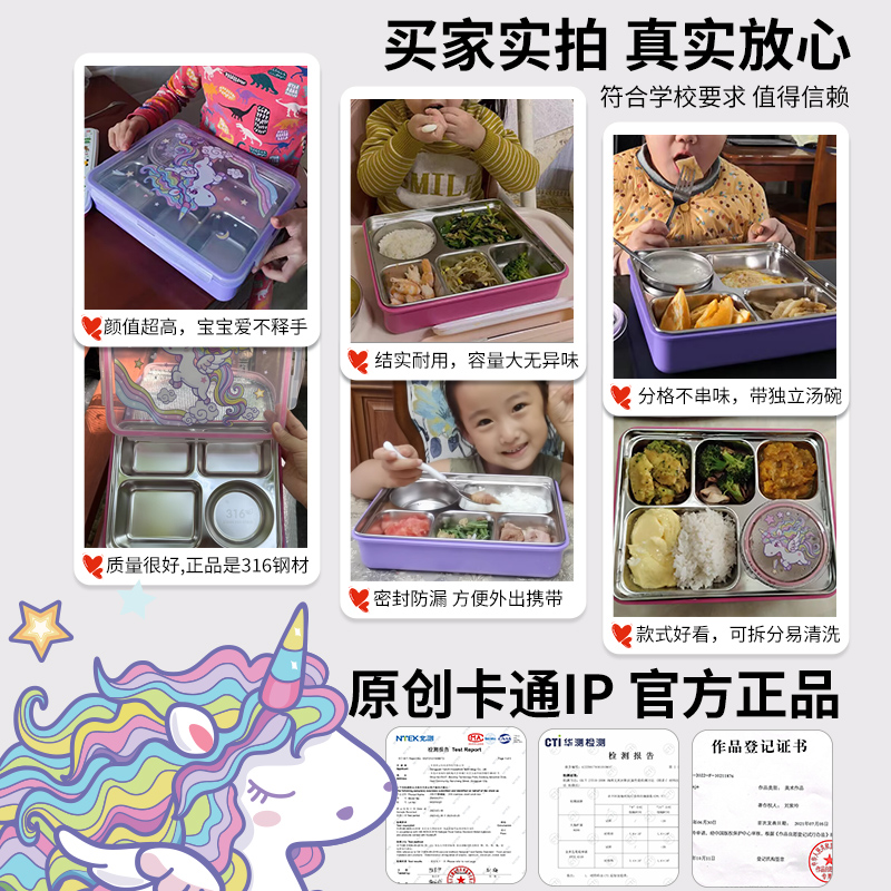 韩国儿童饭盒小学生专用316不锈钢餐具便当盒分格保温餐盒餐盘女