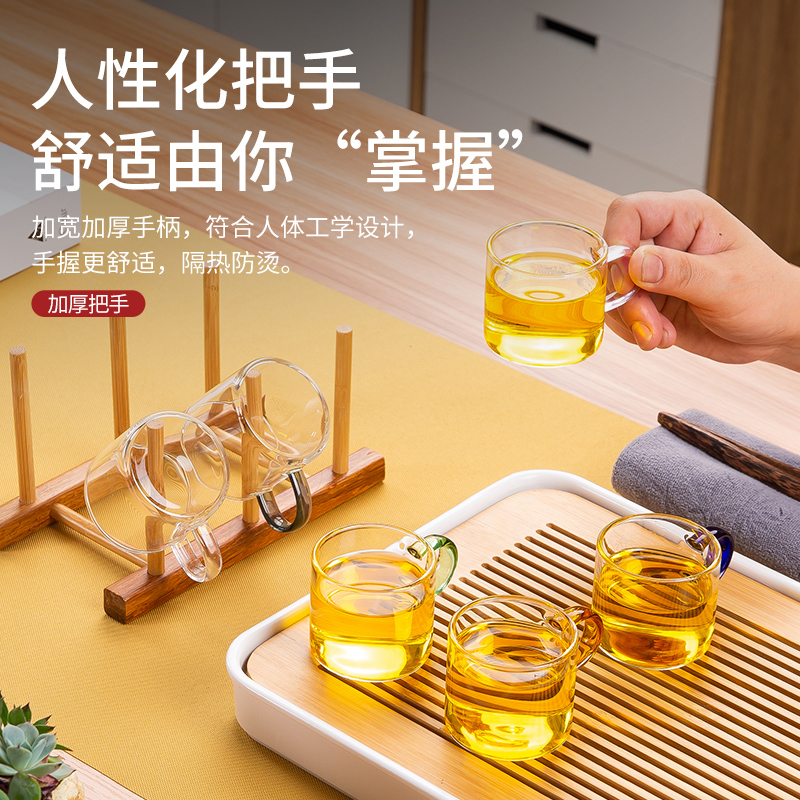 带把玻璃品茗杯小茶杯烟青色直身耐热玻璃品茶杯待客喝茶杯小水杯