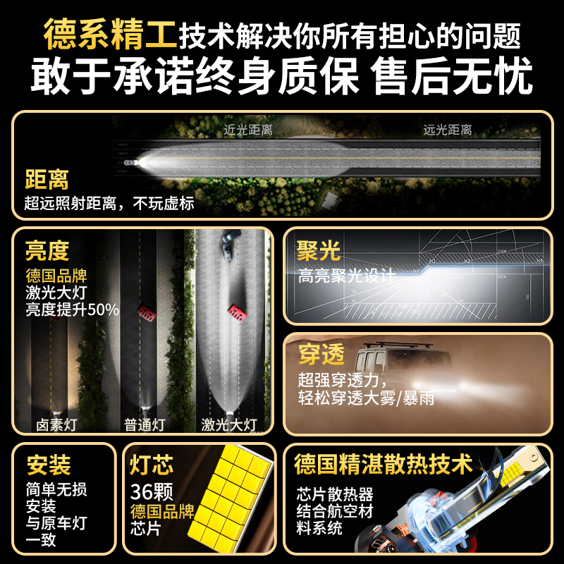 福特led大灯福克斯福睿斯蒙迪欧致胜翼虎汽车灯泡远近一体灯泡