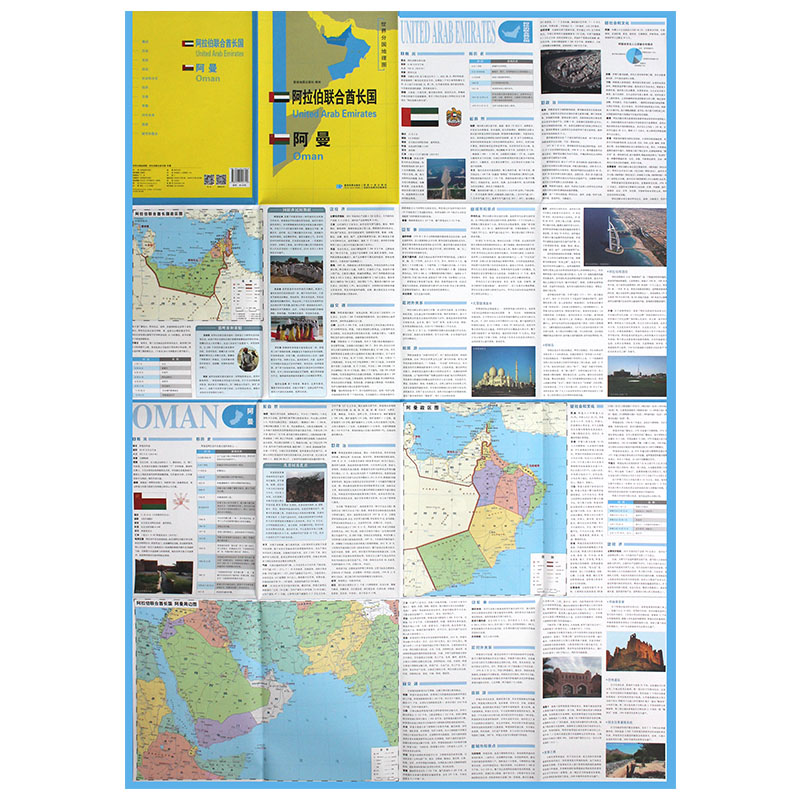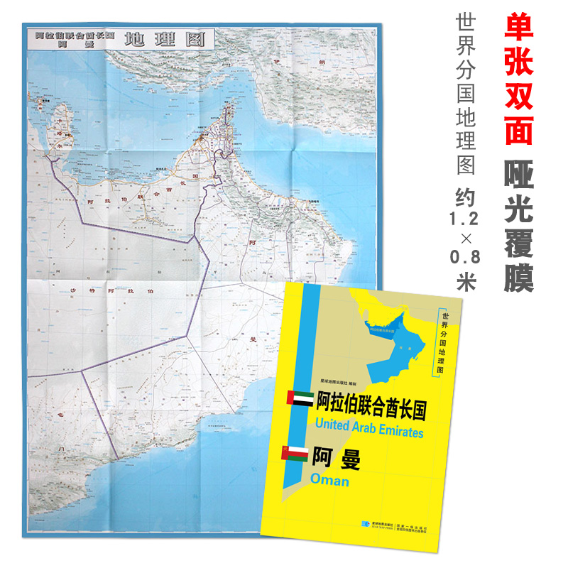 双面印刷 社 阿拉伯联合酋长国地图 星球地图出版 地理百科 折叠便携 世界分国地理图 1240x890mm大图 阿曼 折叠袋装
