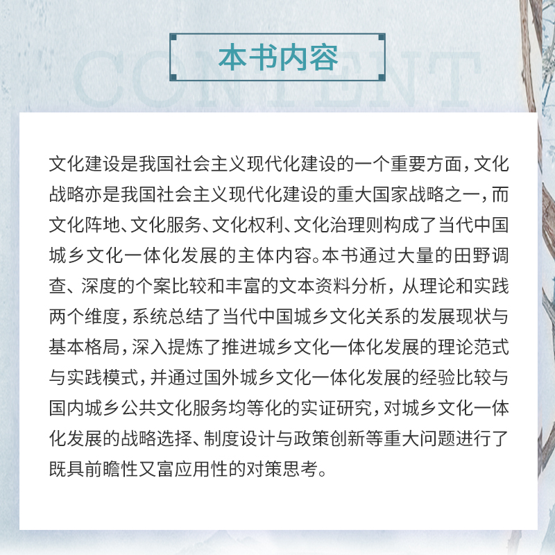 中国治理 逻辑丛书 复旦大学出版 文化治理 唐亚林朱春著 理论与实践 社 9787309153217 逻辑:城乡文化一体化发展
