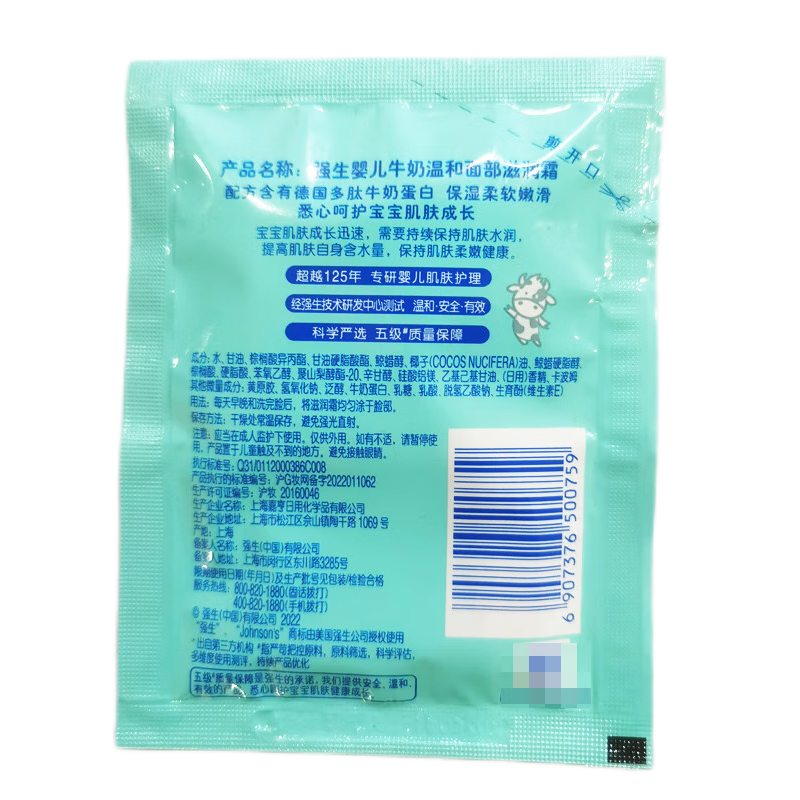 强生婴儿牛奶温和面部滋润霜保湿 补水面霜搽脸油保持肌肤柔嫩健康