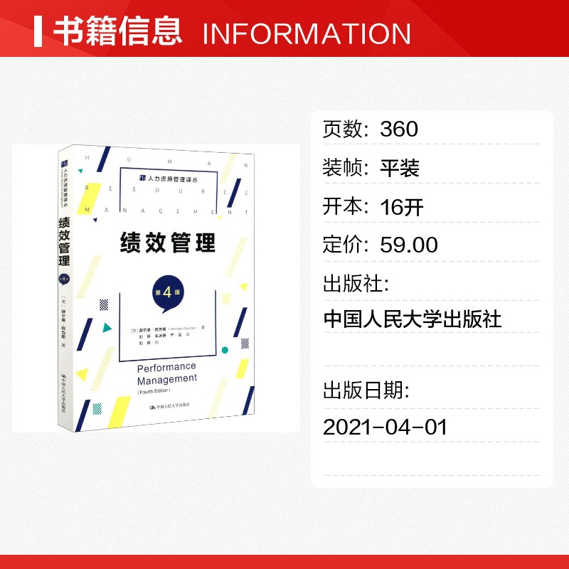 著 严会 第4版 赫尔曼·阿吉斯 图书籍 社 绩效管理 新华书店正版 刘昕 美 人力资源经管 译 朱冰妍 中国人民大学出版 励志