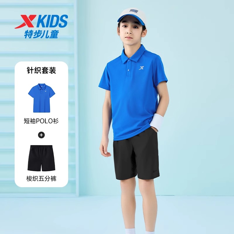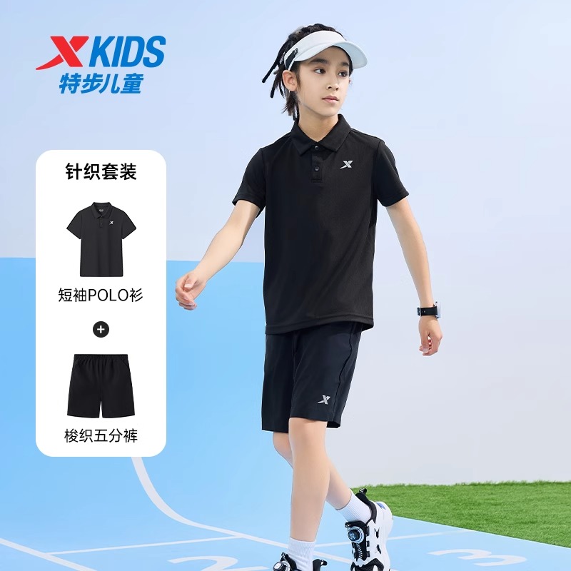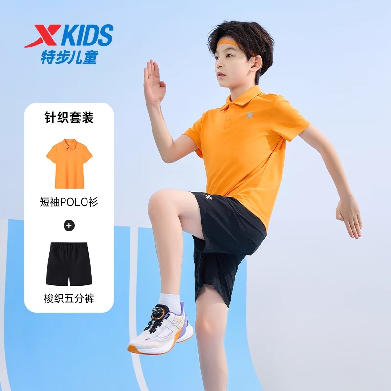 男童运动套装 短裤 2025新款 中大童POLO衫 儿童速干衣服 夏装 特步童装