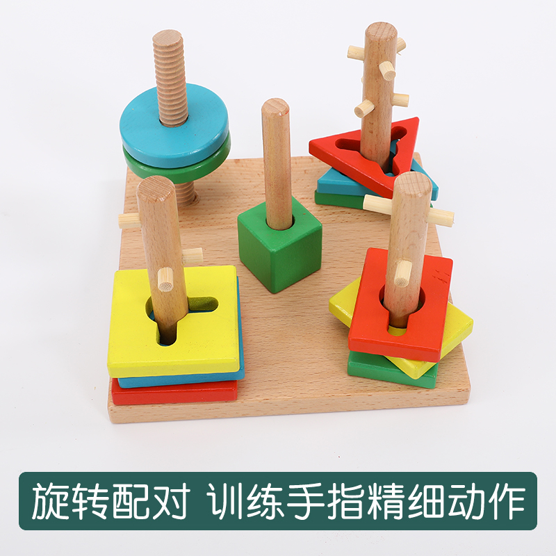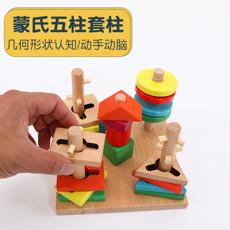 蒙氏早教几何套柱1到3岁宝宝益智拼装 积木男孩女儿童形状配对玩具