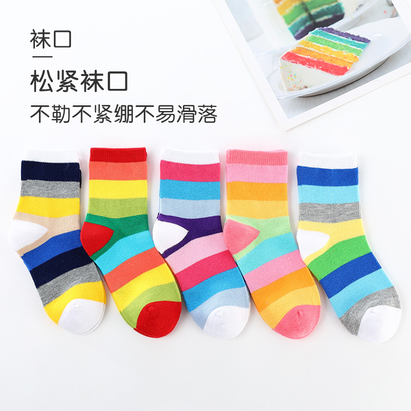 儿童彩虹袜子宝宝彩虹袜彩色男童女童潮袜韩国婴儿ins中筒春秋夏