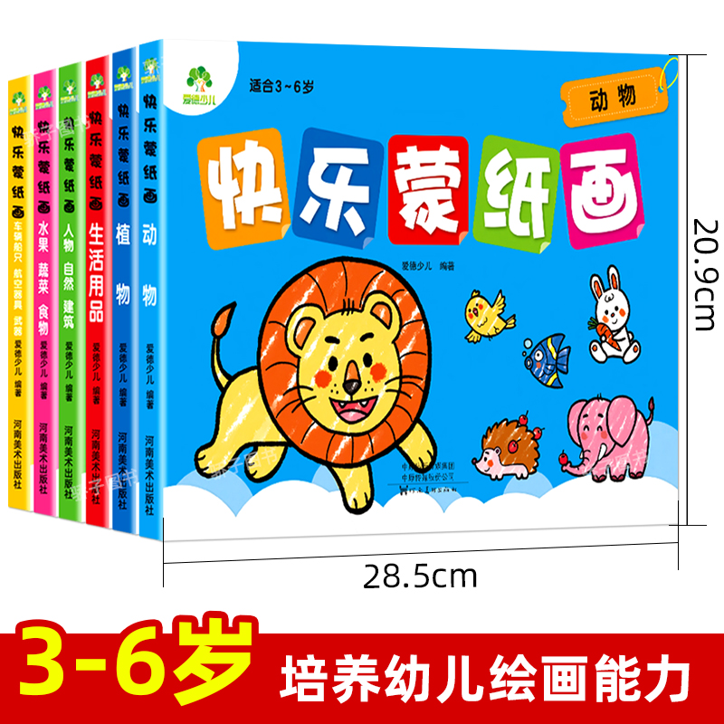快乐蒙纸画全套6册新版 幼儿园儿童绘本3456岁简笔画大全涂鸦绘画学前临摹涂色手绘启蒙教材运笔色彩感知动手动脑认知训练爱德少儿