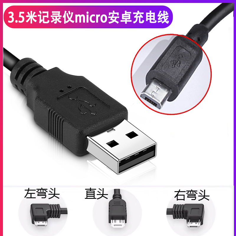 行车记录仪电源线micro安卓充电线小米360车载3.5米usb数据线通用