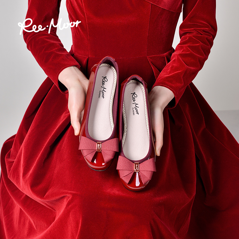 秋季 红色平底鞋 芭蕾法式 浅口婚鞋 达芙妮羊皮单鞋 豆豆鞋 女2025新款