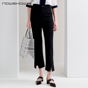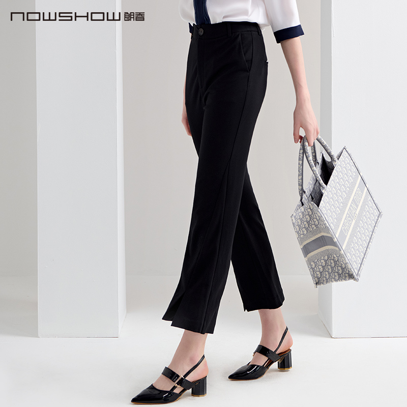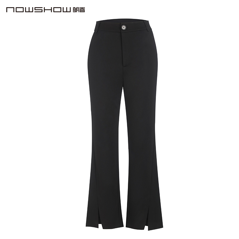 NOWSHOW朗香黑色时尚 212031 前开衩微喇裤