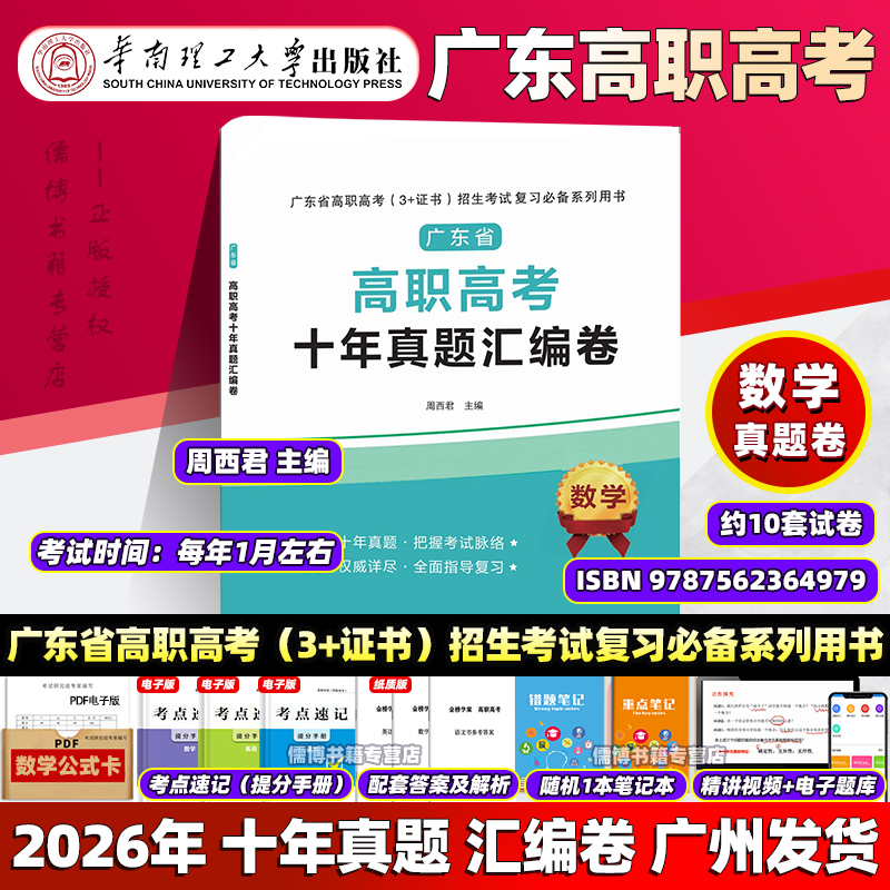 2026年广东省高职高考3 社 证书招生考试复习语文数学英语十年真题汇编卷含22年真题配套中职生对口升学复习书华南理工大学出版