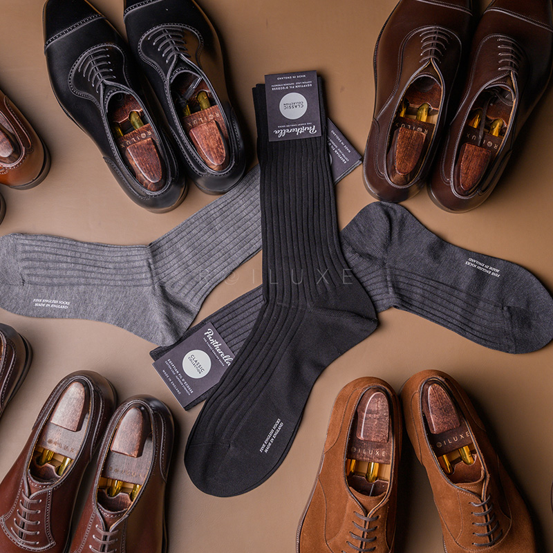 休闲绅装 中高筒商务正装 袜 高端男士 英国Pantherella黑色条纹棉袜