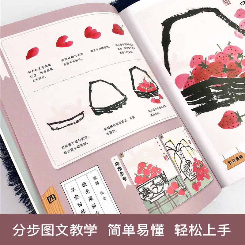 蔬果花卉国画写实5 12岁水墨画传统中国画技法湖北美术 四时之绘郑迪民少儿零基础学国画教程材书四季 儿童国画入门蔬果花卉篇