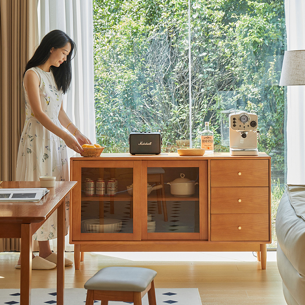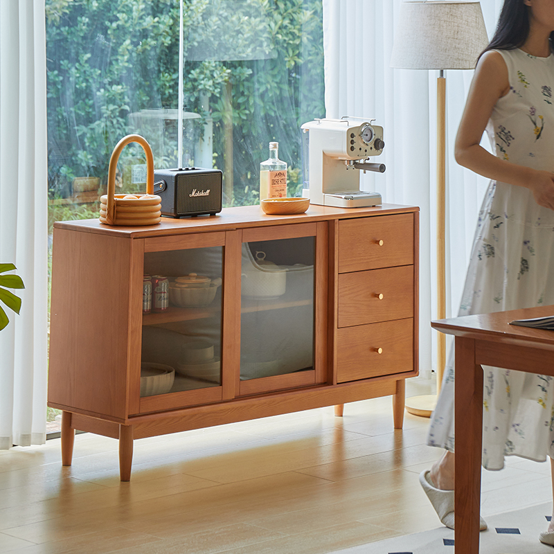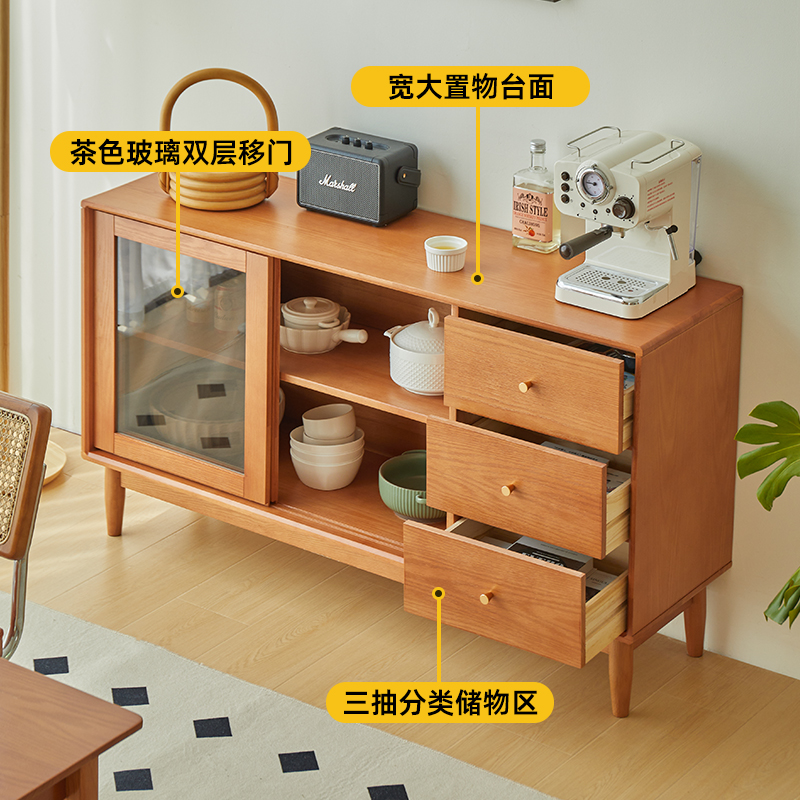 餐边柜茶水柜客厅靠墙柜子储物柜实木色收纳矮柜置物柜家用备餐柜