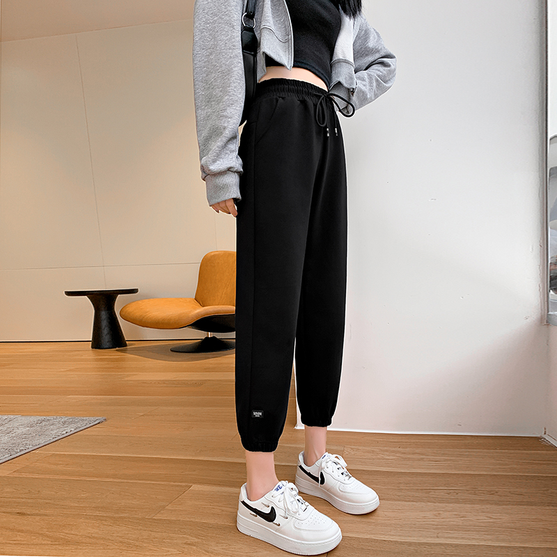 子 宽松束脚高腰显瘦小个子直筒休闲灯笼卫裤 灰色运动裤 女春秋薄款